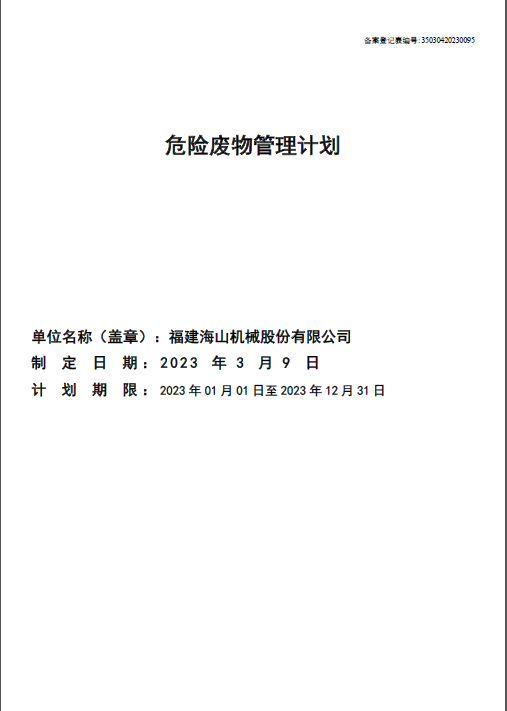 2023年度危險廢物管理計劃